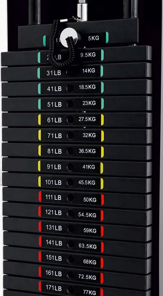 • Με σύστημα βάρους πλακών 80 kg και με τροχαλίες υψηλής ακρίβειας για προοδευτική επιβάρυνση χωρίς “σκαλοπάτια”.