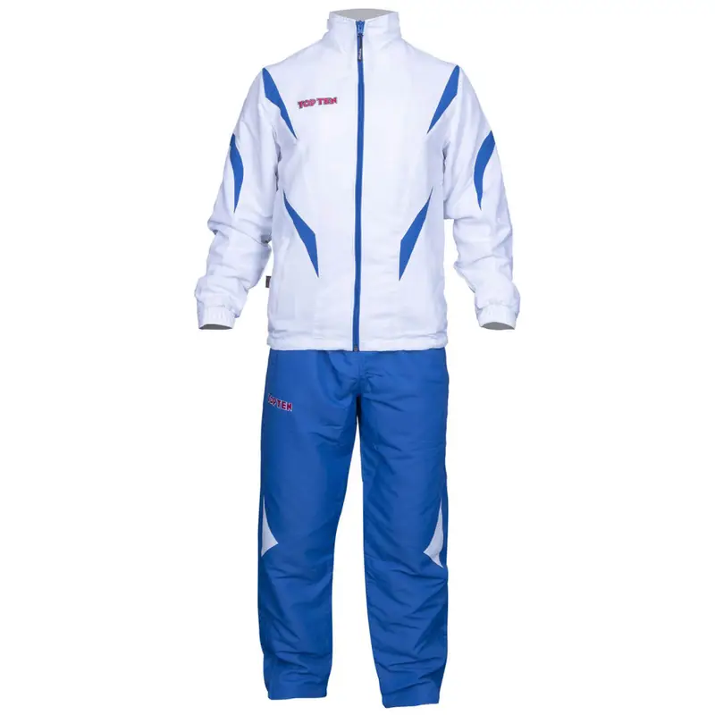 Η αθλητική φόρμα TOP TEN premium μπορεί να φορεθεί στο ζέσταμα και μετά από τους αγώνες για να διατηρήσει τους μυς σας ζεστούς. Ο άνετος σχεδιασμός και το ελαφρύ υλικό την καθιερώνει ως πραγματικά ποιοτική αθλητική φόρμα. Περιλαμβάνει πλήρης μήκος φερμουάρ στην ζακέτα και άνετο παντελόνι.