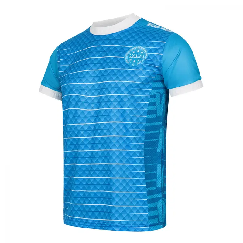 Ειδικά αναπτυγμένο για το kickboxing και πιστοποιημένο με την επίσημη ετικέτα WAKO, αυτό το T-shirt πληροί τις προδιαγραφές για αθλήματα ελαφριάς επαφής και αγωνιστική χρήση. Ο sublimated σχεδιασμός με δυναμικά γραφικά εφέ δημιουργεί μια τολμηρή, μοντέρνα εμφάνιση, ενώ τα χαρακτηριστικά τελειώματα στα μανίκια TOP TEN προσθέτουν επαγγελματικό χαρακτήρα που ξεχωρίζει στο ταπί.