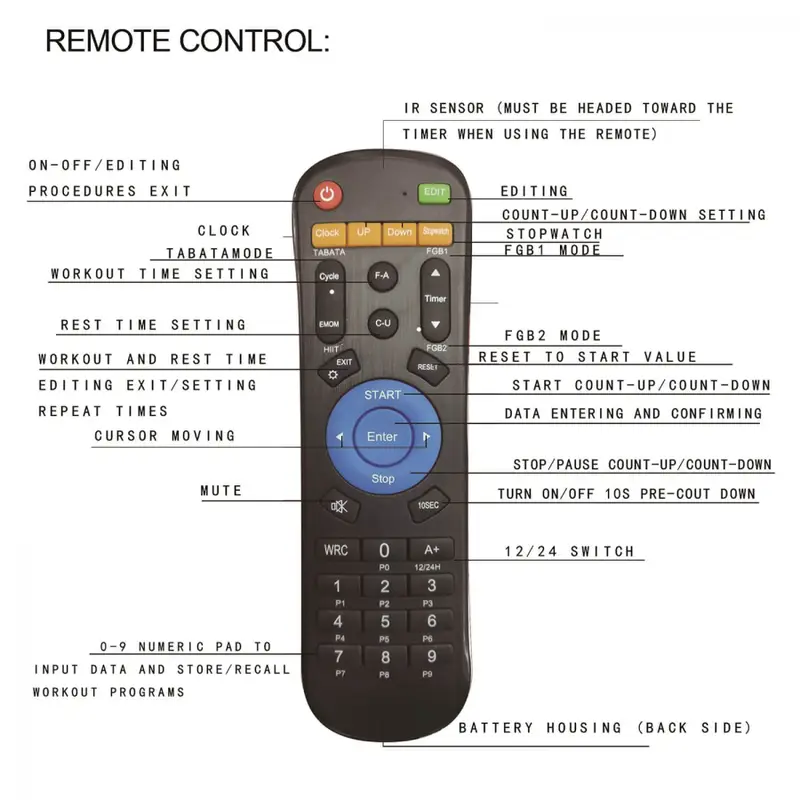 Ο Χρονομετρητής Διαστημάτων με Τηλεχειριστήριο G12B+2.3R έχει σχεδιαστεί για χρήστες που απαιτούν απόλυτο έλεγχο και εξατομίκευση κατά τη διάρκεια των προπονήσεων ή των ασκήσεων. Σε αντίθεση με τους συνηθισμένους χρονομετρητές που περιορίζονται σε μία ή δύο προκαθορισμένες ρυθμίσεις, αυτό το μοντέλο διαθέτει αριθμητικά πλήκτρα 0–9, καθένα από τα οποία μπορεί να ρυθμιστεί να εναλλάσσεται μεταξύ εννέα διαφορετικών χρονικών διαστημάτων. Έτσι, μπορείτε να δημιουργήσετε πλήρως εξατομικευμένα προγράμματα που ανταποκρίνονται στις δικές σας ανάγκες. Το τηλεχειριστήριο εξασφαλίζει εύκολη χρήση από απόσταση, ενώ τα πέντε επίπεδα ρυθμιζόμενης φωτεινότητας επιτρέπουν την προσαρμογή της οθόνης σε κάθε συνθήκη φωτισμού — από σκοτεινά γυμναστήρια έως φωτεινά στούντιο.