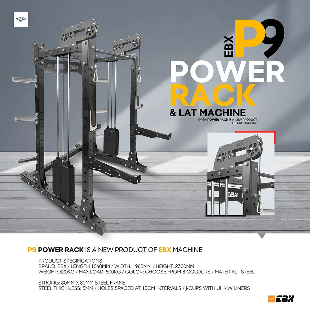 Το Power Rack P9 EBX συνδυάζει τη δύναμη του κλασικού σταθμού με την ευελιξία των μηχανημάτων τροχαλίας, προσφέροντας ένα μοναδικό σύστημα για ολοκληρωμένη προπόνηση. Σχεδιασμένο για επαγγελματικά γυμναστήρια και χώρους υψηλής απόδοσης.