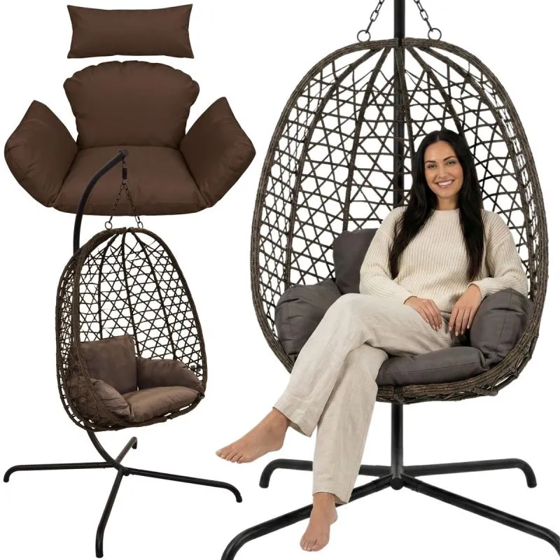 Create your own private relaxation zone. Sit back, gently rock, and experience true relaxation. The COCOON HANGING CHAIR WITH A 195CM FRAME, DARK BROWN, 120KG, is the perfect spot for a book, coffee, or a moment of silence after a busy day.