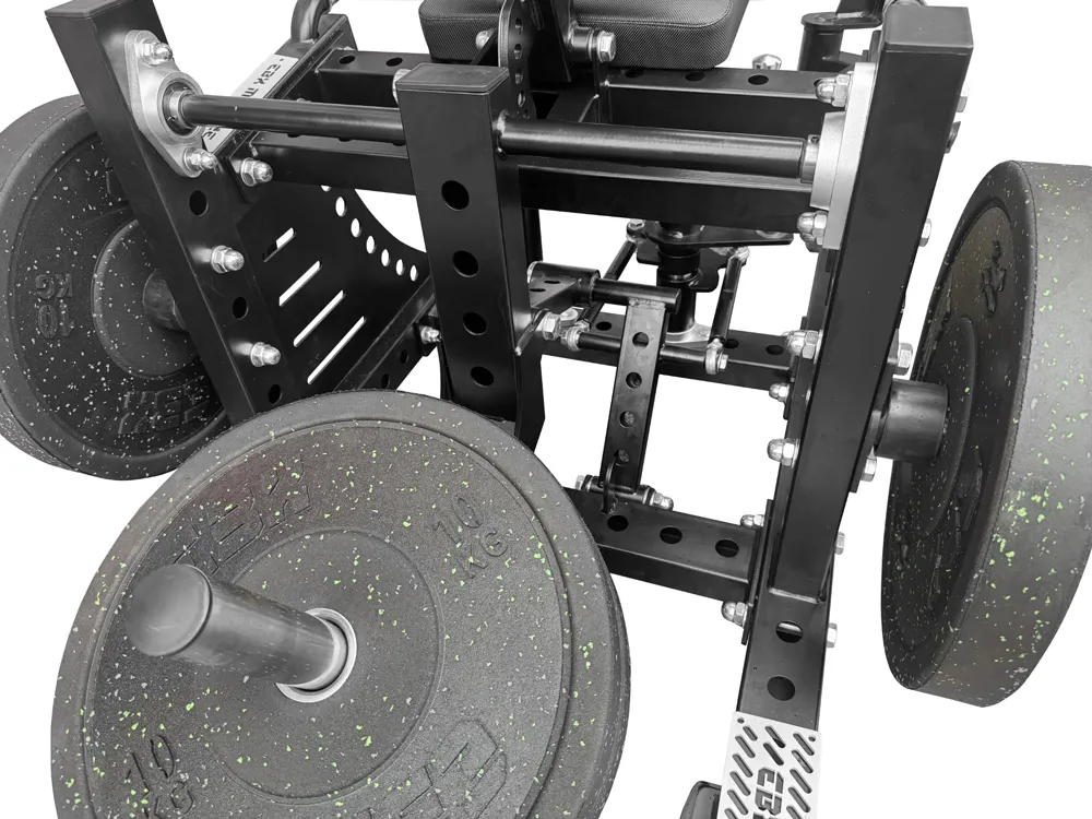 Με στιβαρή μεταλλική κατασκευή και ευρύ φάσμα ρυθμίσεων, το μηχάνημα εξυπηρετεί αθλητές κάθε σωματότυπου, χάρη και στις διπλές θέσεις ποδιών που προσαρμόζονται εύκολα.