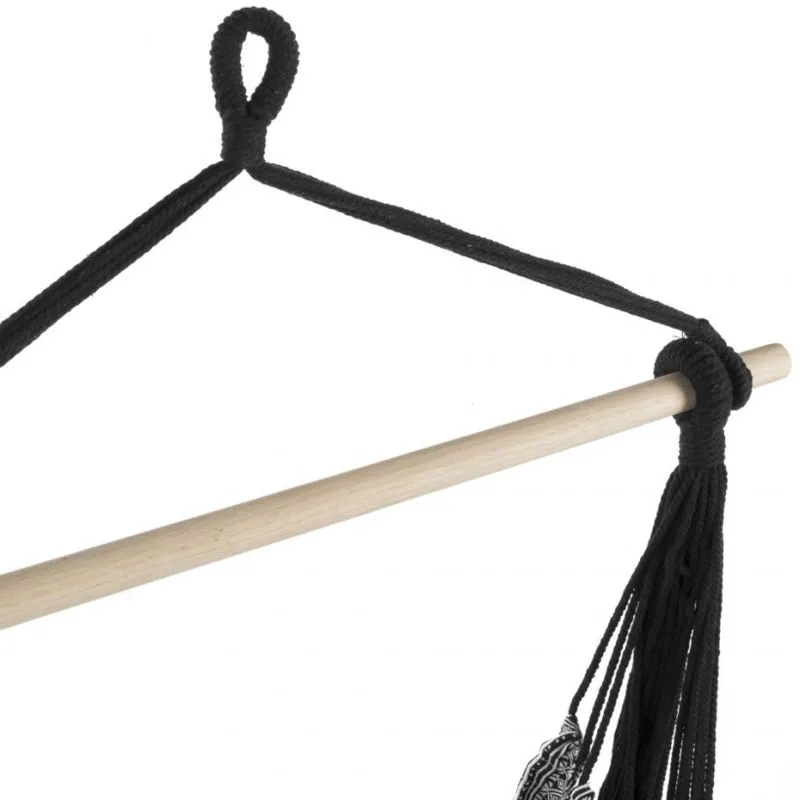 - This durable hammock seat is perfect for summer days. The fabric is made of cotton, and the beams are made of durable wood. A comfortable sitting position in the hammock allows for relaxation.