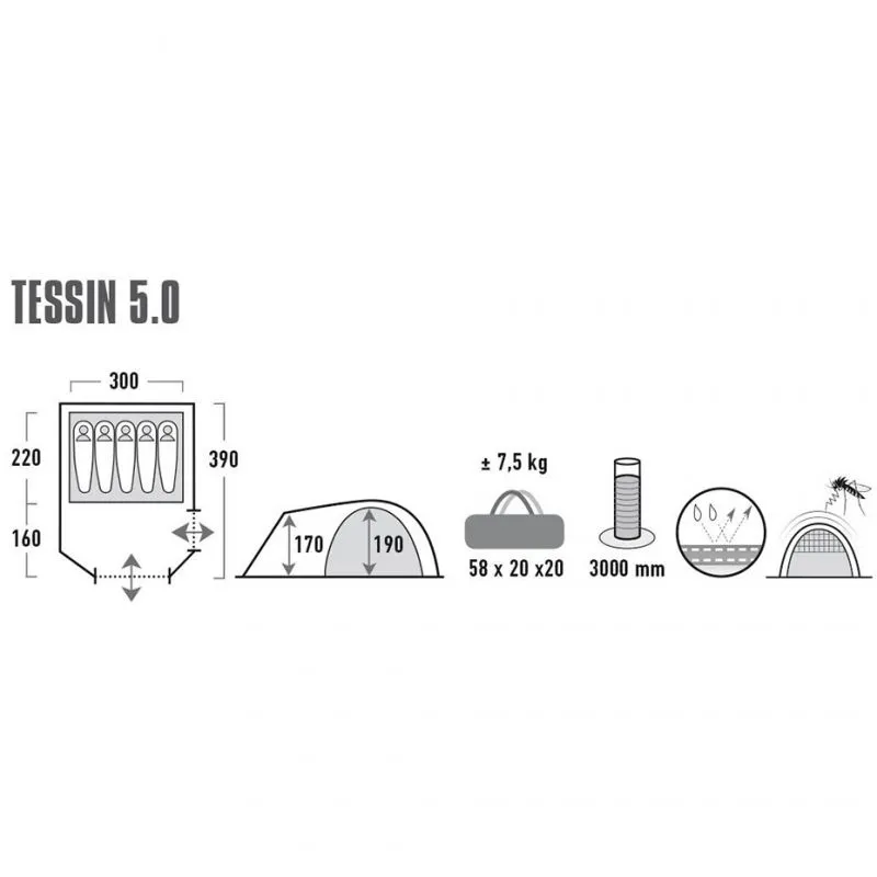 Σκηνή Camping 5 Ατόμων High Peak Tessin 5 10228