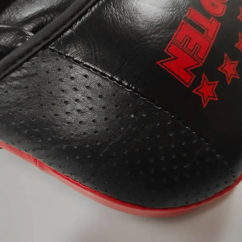 Ο υψηλής ποιότητας συνδυασμός αφρού συμπίεσης και γνήσιου δερμάτινου καλύμματος εξασφαλίζει εξαιρετική απορρόφηση ορμής και κραδασμών. Κάθε χτύπημα απορροφάται αποτελεσματικά, προστατεύοντας τον χειριστή από δυνατά χτυπήματα, γροθιές και λακτίσματα, ενώ παράλληλα προσφέρει καθαρή και δυναμική αίσθηση απόκρισης. Η ελαφρώς υπερυψωμένη επιφάνεια στόχου βελτιώνει την ακρίβεια και αυξάνει την απορρόφηση ακριβώς εκεί που χρειάζεται περισσότερο.