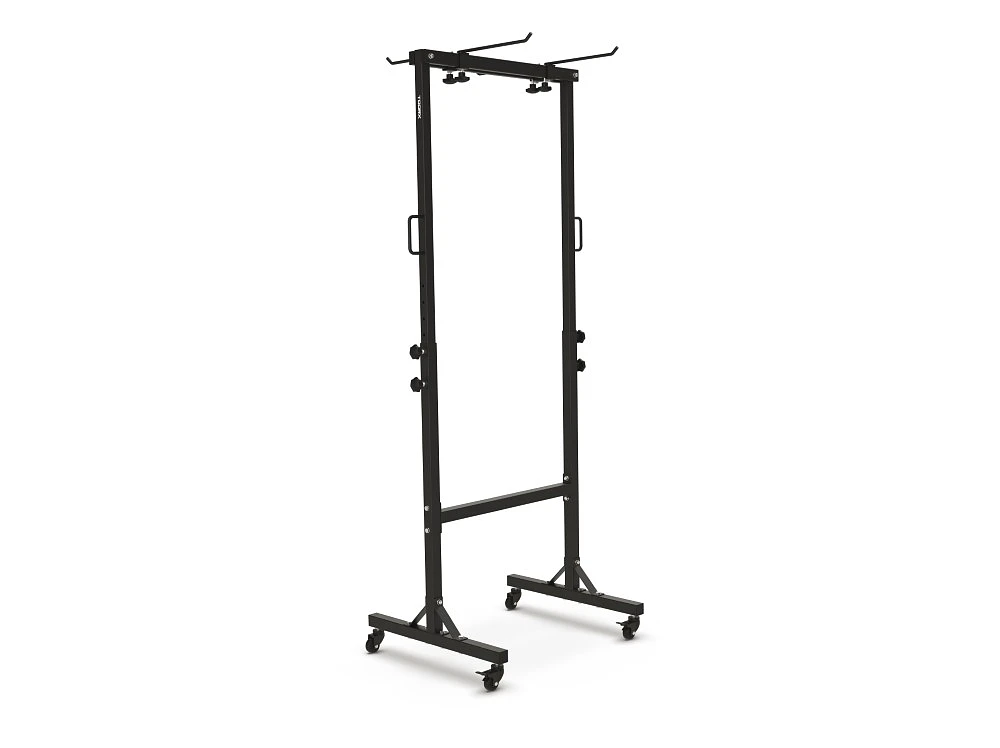 Βάση εδάφους διπλής όψης για στρώματα γυμναστικής με ρυθμιζόμενους βραχίονες στο πλάτος και ρυθμιζόμενο ύψος. Τα ροδάκια μεταφοράς που διαθέτει θα κάνουν πολύ εύκολη τη μετακίνηση μέσα στην αίθουσα. Ιδιαίτερα κατάλληλο για γυμναστήρια που διαθέτουν αίθουσες ομαδικών προγραμμάτων και personal studios.